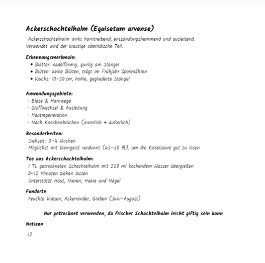 Nur getrocknet verwenden, da frischer Schachtelhalm leicht giftig sein kann.