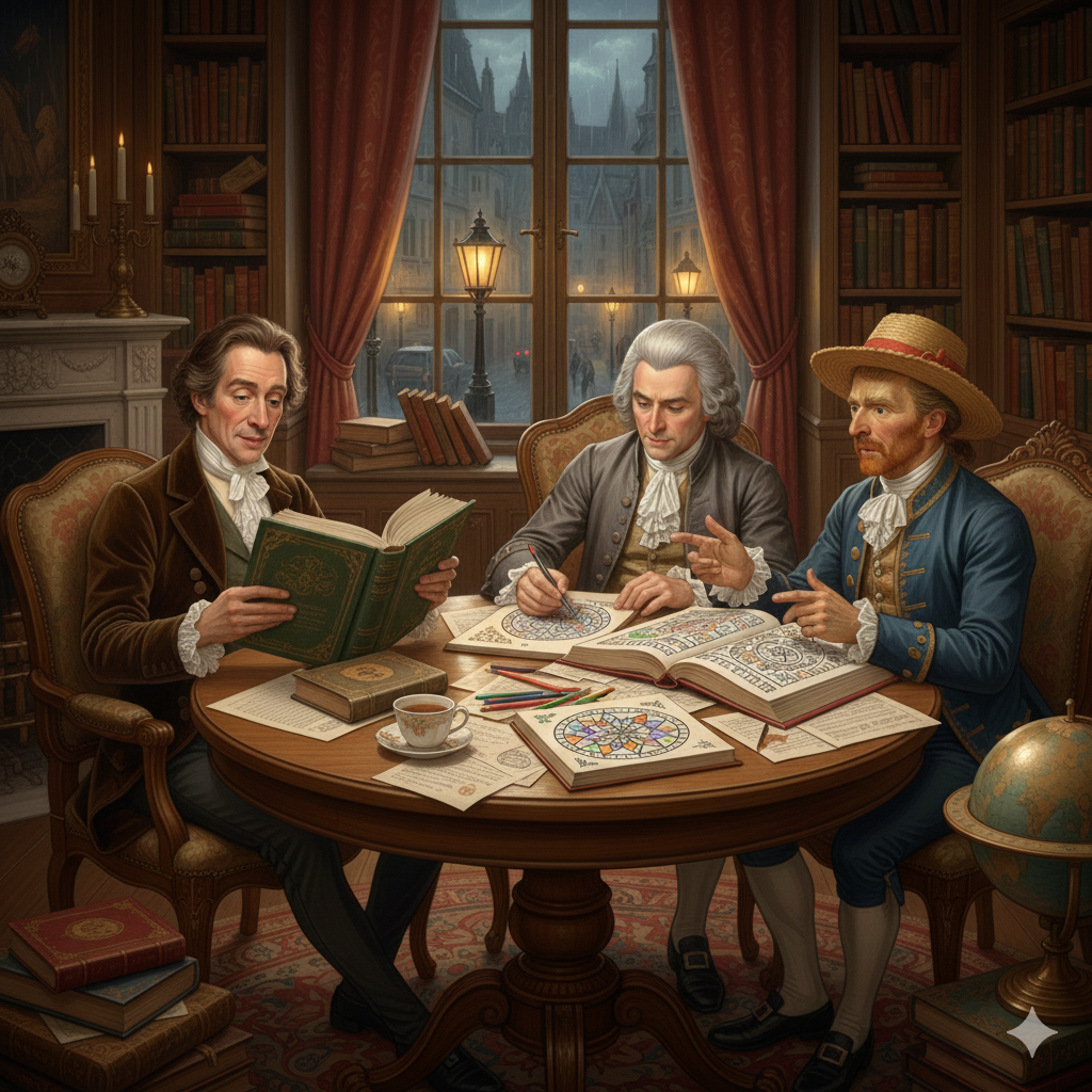 Rätsel und Genies – Band 1 In diesem Buch begegnen sich große Denker, Künstler und Erfinder in Szenen voller Witz, Tiefe und Wahrheit. Jede Geschichte ist ein kleines Rätsel – vier Aussagen, eine Wahrheit, drei Lügen. Der Leser entscheidet, wer die Wahrheit sagt, und entdeckt dabei, wie Denken, Wahrnehmen und Logik zusammenwirken. Rätsel und Genies – Band 1 führt zu Persönlichkeiten, die die Welt verändert haben: von Darwin und Wallace über Einstein und Curie bis zu Goethe, Schiller und anderen. Ihre Eigenheiten, Gedanken und Gegensätze werden lebendig, und jedes Rätsel öffnet eine Tür zu Geschichte, Psychologie und Erkenntnis. Das Buch verbindet Wissen mit Spiel, Nachdenken mit Staunen. Es lädt dazu ein, Zusammenhänge zu erkennen, historische Figuren neu zu sehen und das eigene Urteilsvermögen zu schärfen. So entsteht eine Sammlung, die Bildung und Freude vereint – leise, intelligent und mit feinem Humor. Jede Seite ist klar gestaltet, im typischen Stil von artuprints: sorgfältig gesetzter Text, harmonisches Layout, ruhige Typografie. Ideal für Leserinnen und Leser, die gerne beobachten, kombinieren und mitdenken. Paperback, ca. 135 Seiten © 2025 artuprints